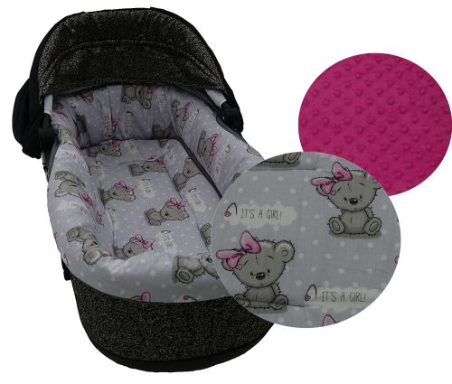 Wkład posiada dookoła gumkę i zapięcia po bokach dzięki czemu jest uniwersalny i pasuję do większości wózków dziecięcych.
