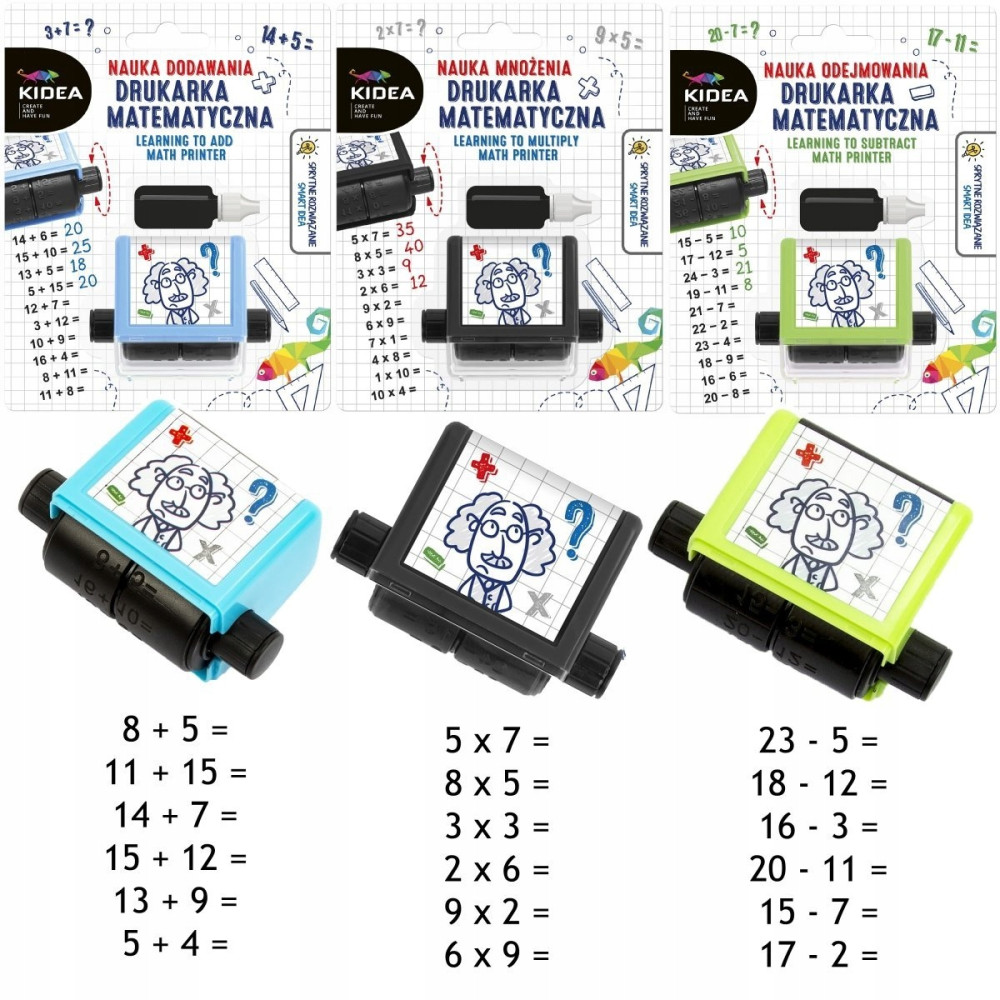 3 x DRUKARKA MATEMATYCZNA tabliczka mnożenia dodawanie odejmowanie KIDEA