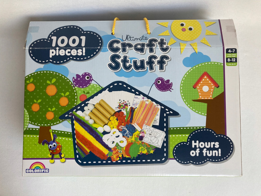 Ogromny zestaw kreatywny: kształty naklejek piankowych, kolorowe koraliki, cekiny, pałeczki pop, kolorowe słomki, poruszające się oczy, pom pom pomy, styropianowe kulki i więcej!