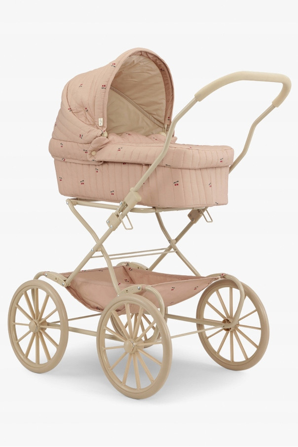 Uroczy wózek dla lalek Konges slojd w stylu vintage z czterema dużymi kółkami wykonanymi z materiału EVA dla dodatkowej stabilności.