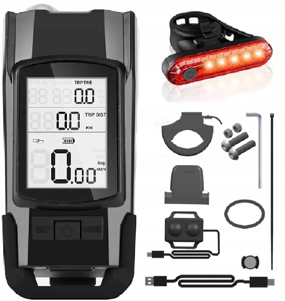 ✅Wodoodporny licznik + Lampka rowerowa LED 800 lumenów + Klakson 120 dB