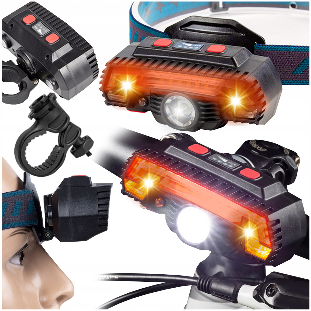 Wielofunkcyjna lampka rowerowa z kierunkowskazami z funkcją latarki czołowej oraz lampy.