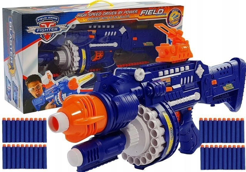 Karabin pozwoli na bezpieczną zabawę, posiada piankową amunicję, która została wykonana z atestowanego materiału. Do zestawu dołączone są okulary ochronne. Jego budowa przypomina konstrukcję prawdziwej broni- jednak jest bezpieczna, nie posiada ostrych zakończeń i elementów. Celownik zawarty w zestawie pozwala na dokładniejsze wymierzenie celu. Rotacyjny bęben, który pracuje nie tylko szybko, ale także cicho ma w swoim magazynku aż 20 naboi.