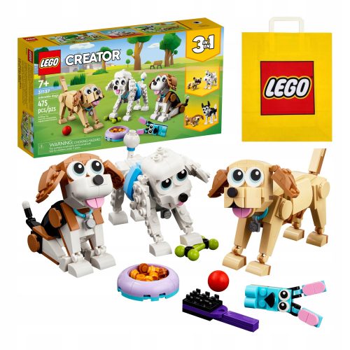 Ten zestaw LEGO® Creator 3w1 zawiera beagle’a, pudelka i labradora z ruchomymi elementami, a także liczne akcesoria.