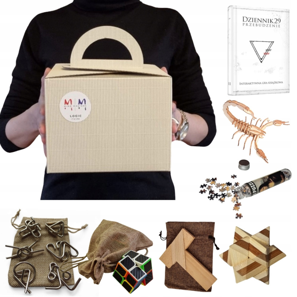 W zestawie LOGIC BOX oprócz książki, która jest jego "sercem", znajdziecie starannie dobrane łamigłówki i gry logiczne, oryginalnie zapakowane lub umieszczone w wysokiej jakości woreczkach.