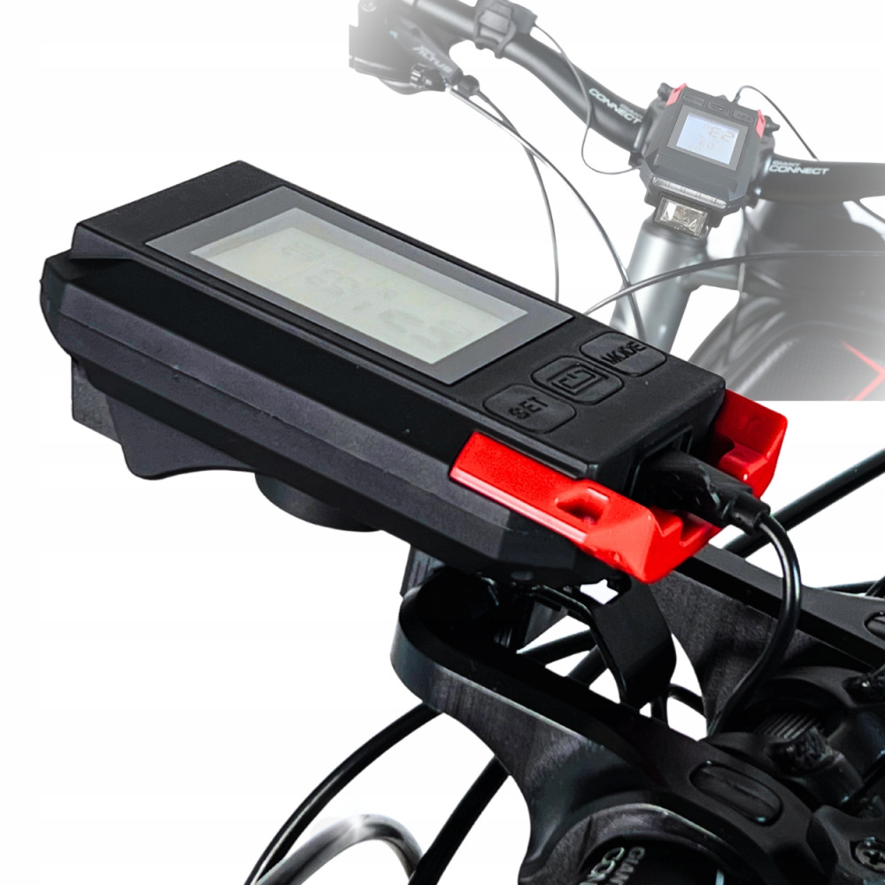 LICZNIK - Lampka wyposażona jest w wyświetlacz na którym możemy sprawdzić wszystkie najważniejsze informacje z naszej podróży. Takie: jak: prędkość, czas, droga przebyta, godzina, temperatura, liczba kalorii, największa prędkość, średnia prędkość, całkowity czas, itp.