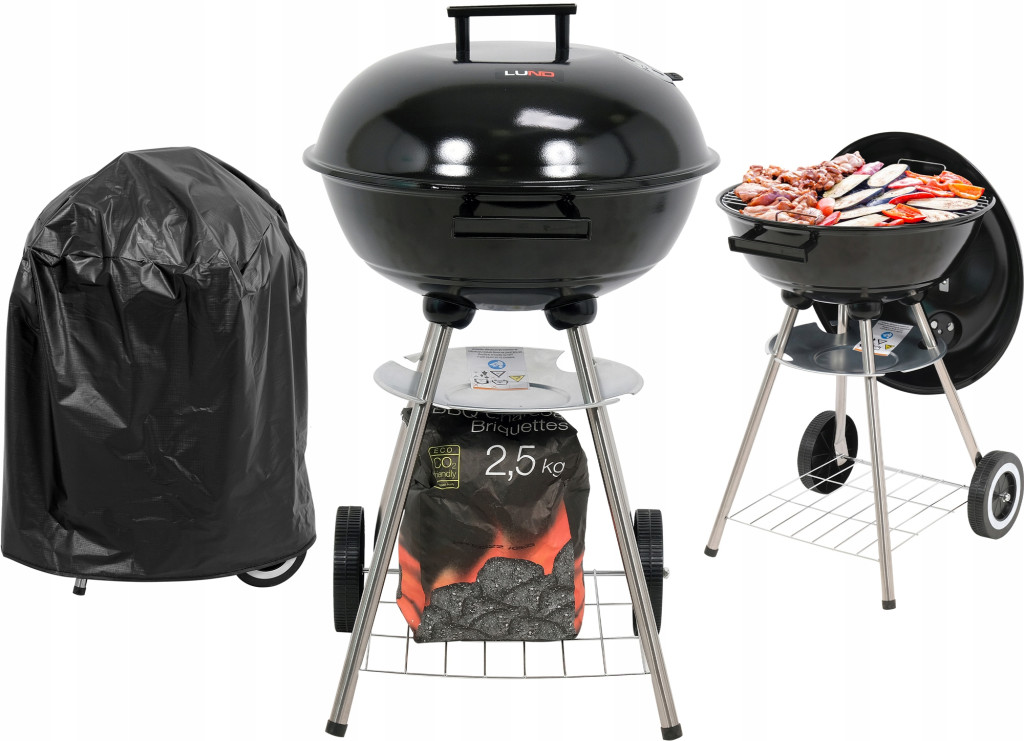 Klasyczny, okrągły grill węglowy LUND z chromowanym rusztem i utrzymującą temperaturę pokrywą.