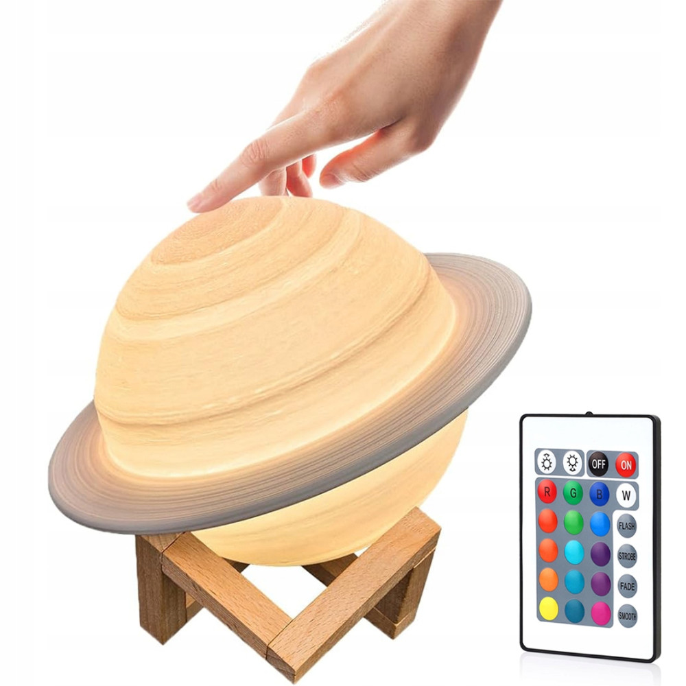 Wyjątkowa lampka nocna Saturn 3D to nie tylko źródło światła, ale i element, który wprowadzi magiczną atmosferę do każdego wnętrza. Dotykowy włącznik i zdalne sterowanie pozwalają na łatwą zmianę kolorów i trybów świecenia, tworząc idealne warunki do snu, relaksu czy pracy.