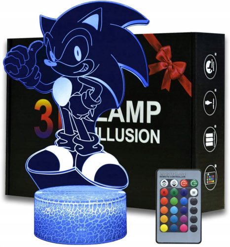 Sonic Oświetlenie nocne 3D Illusion ma ładny efekt hologramu i jest znacznie lepszy w ciemności. Świetne kolory i niesamowity wygląd, można je umieścić w sypialni, pokoju dziecięcym, salonie lub na przyjęciu urodzinowym jako oświetlenie dekoracyjne.