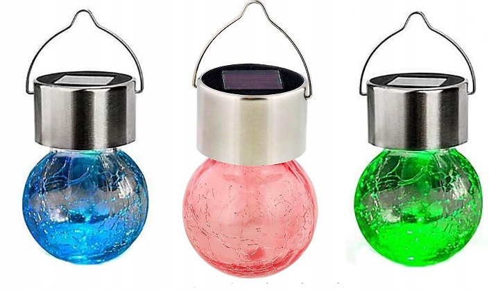Zestaw 3 x kolorowa lampka solarna ogrodowa wisząca szklana kula LED3 szt.