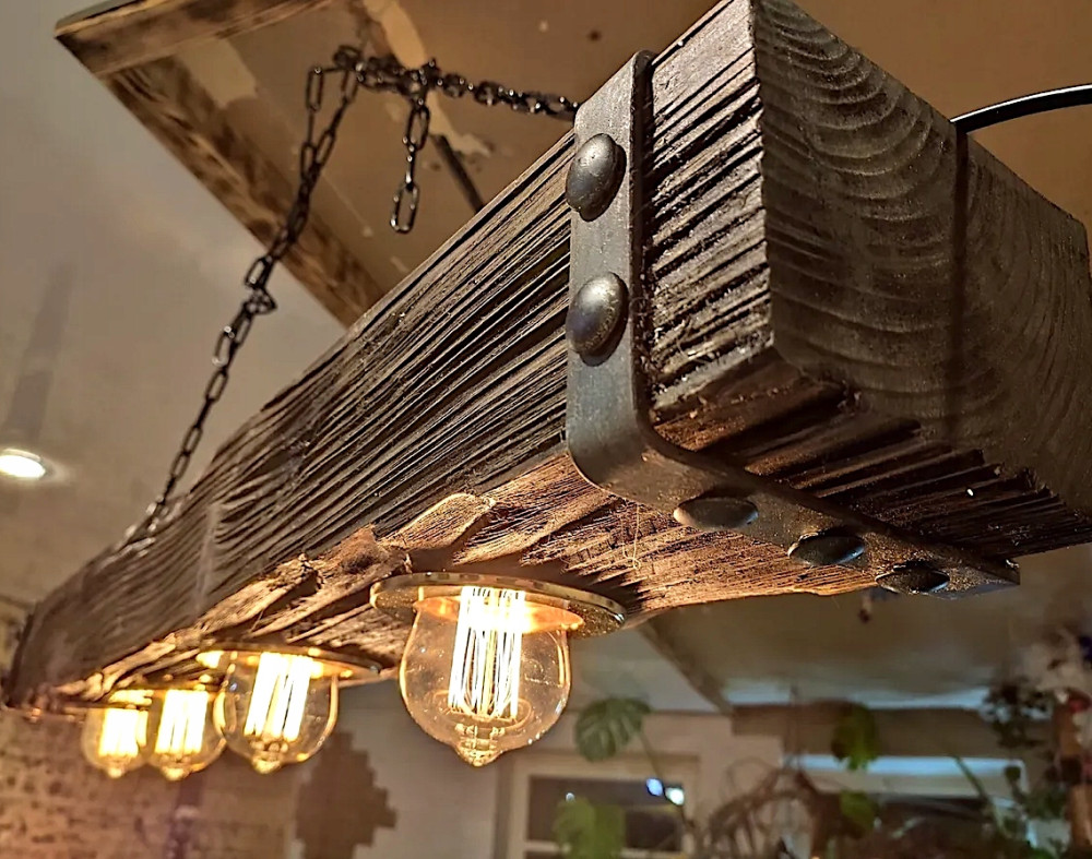 -Lampa wykonana jest z grubej drewnianej belki w kolorze "palisander”