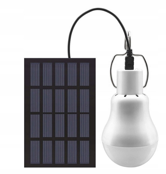 ŻARÓWKA LED z Panelem Solarnym 10W Przenośna Żarówka LED na Kemping Biwak