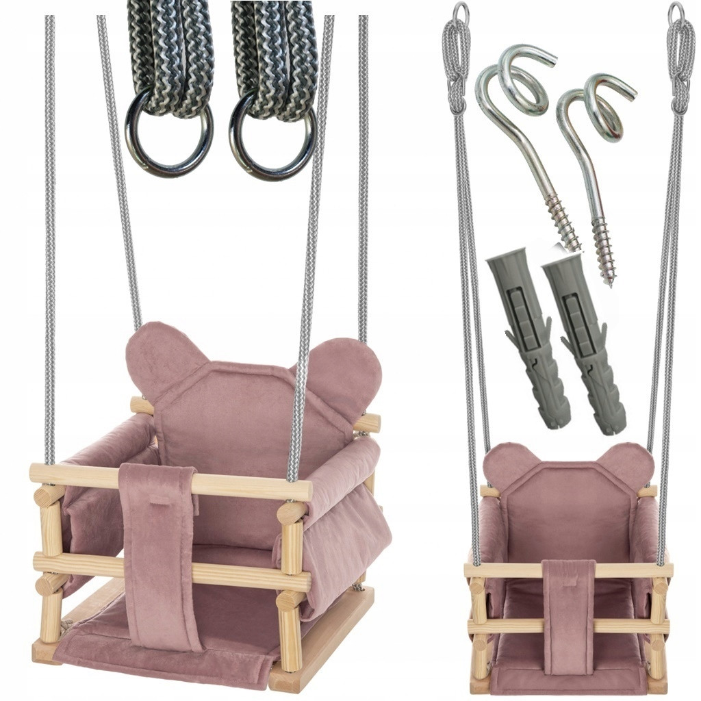 Zestaw składa się z huśtawki szczebelkowej oraz poduszki przypominającej głowę misia, dzięki której dziecko może siedzieć na huśtawce wygodnie i bezpiecznie. Huśtawka zapewni wiele godzin fantastycznej zabawy zarówno na dworze jak i w domu. Produkt wykonany jest z naturalnego nieimpregnowanego drewna.