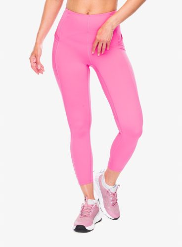 Legginsy treningowe damskie Under Armour Meridian Ankle Leg Pintuk - bubble gum/metallic silver - to szybkoschnący model pochodzący z treningowej kolekcji amerykańskiej marki. Wysoce wytrzymała konstrukcja to zasługa wykorzystanego w składzie materiałowym nylonu. Getry posiadają szeroki pas oraz dwie wsuwane kieszenie na udach.