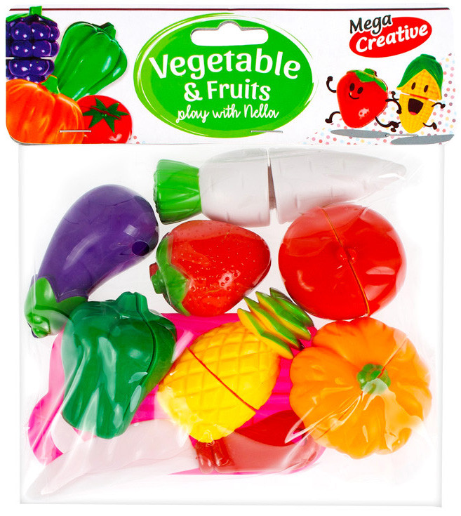 Dzięki Zestawowi do krojenia MEGA CREATIVE, Twoja pociecha pozna różne rodzaje Owoców i Warzyw. Wspólna zabawa na pewno zaowocuje wspaniałymi chwilami podczas wspólnego gotowania smakołyków w kuchni! W zestawie zajdują się: 2 deski do krojenia, 2 noże oraz 14 owoców i warzyw - różniących się w zależności od zestawu. Wszystkie Owoce oraz Warzywa podzielone są na dwie części, połączone ze sobą za pomocą rzepów, co imituje proces ich krojenia. Produkty wykonane z plastiku. Przeznaczone dla dzieci w wieku: 3+. Wymiary opakowania(dł. x wys. x gł.) [cm]: 26x29x9.