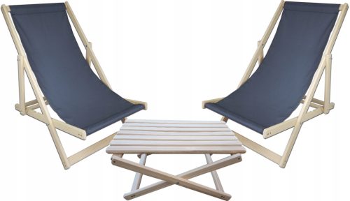 zestaw dwóch lezaków drewnianych + stolik kawowy