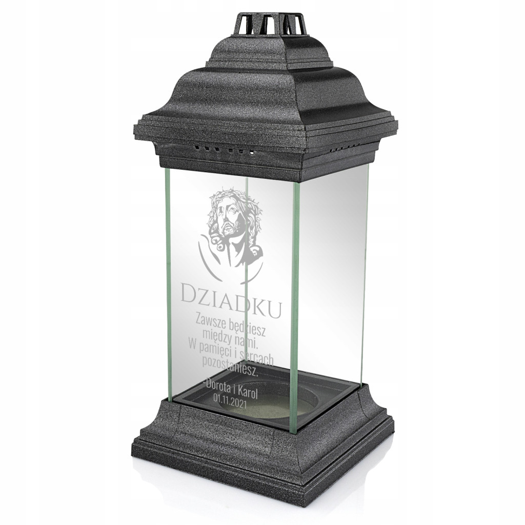 Znicz wykonany został z transparentnego szkła, podstawa z tworzywa sztucznego. Przystosowany do różnych rozmiarów wkładów, ze stabilną podstawą i daszkiem zabezpieczającym przed wiatrem.