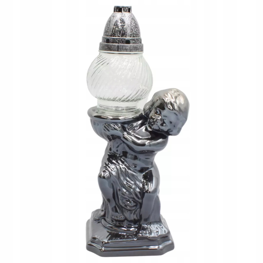 Znicz Ceramiczny Duży Anioł Czarny Połysk na Cmentarz LC17