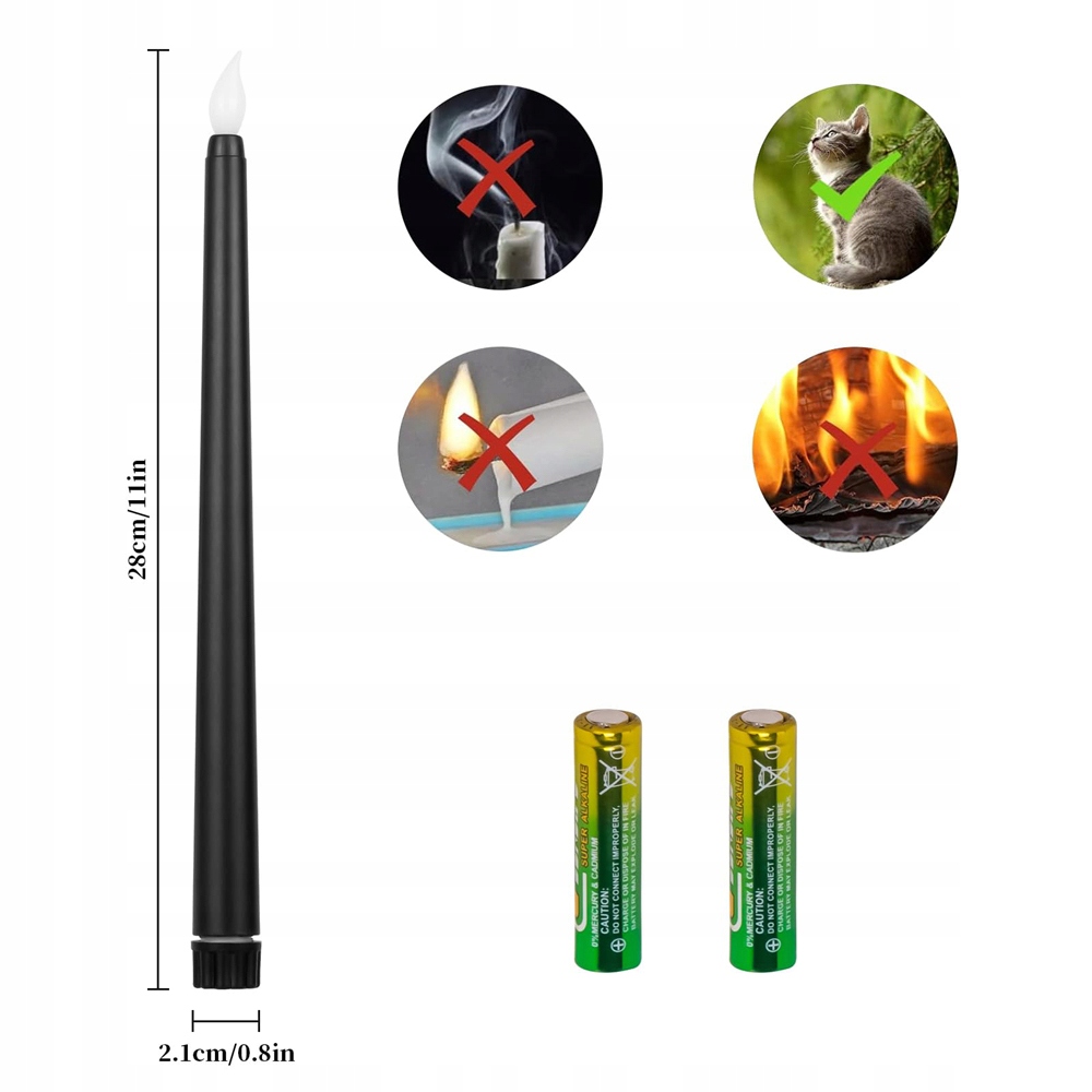 ✨✨ Każda świeczka zasilana jest 2 bateriami AAA (brak w zestawie) i ma średnicę około 2,1 cm, co pozwala na jej montaż we wszystkich standardowych świecznikach.