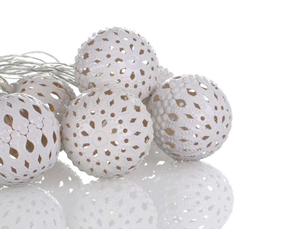 Dekoracyjny łańcuch lampek. Sprawiających wrażenie jakby ktoś w delikatnej porcelanie powycinał piękną koronkę.