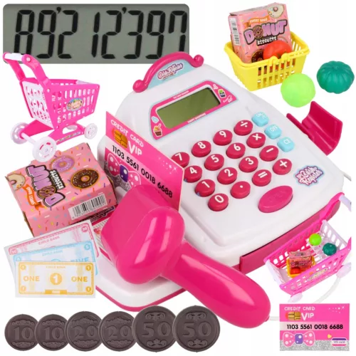 Dużą atrakcję stanowi kalkulator z wbudowanym wyświetlaczem, który stanowi fundament do rozwijania zdolności matematycznych u dzieci. W trakcie zabawy w sklep kalkulator umożliwi zsumowania wartości do zapłaty oraz kwoty do wydania reszty.