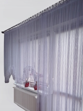Firany wykonane są oddzielnie na taśmach 6 cm typu smok. W firanie w łuku różnica między bokami, a środkiem wynosi około 30 cm.