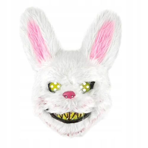 Maska ducha królika pokryta białym futerkiem z różową wewnętrzną stroną uszu. Pokryte krwią zębiska i futro wokół paszczy oraz żółte oczy zdecydowanie zaprzeczają zwyczajowemu wizerunkowi tego lubianego zwierzątka. Maska idealna na Halloween i inne bale przebierańców.
