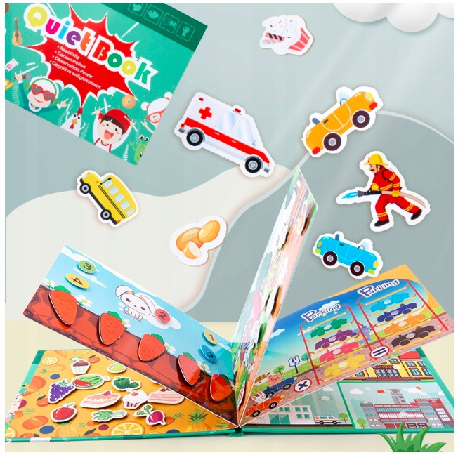 Nasza książeczka pozwala na niezwykle kreatywną zabawę. Odczepiane elementy w książeczce stymulują zmysł dotyku oraz wzorku, co jest bardzo ważne na wczesnym etapie rozwoju.