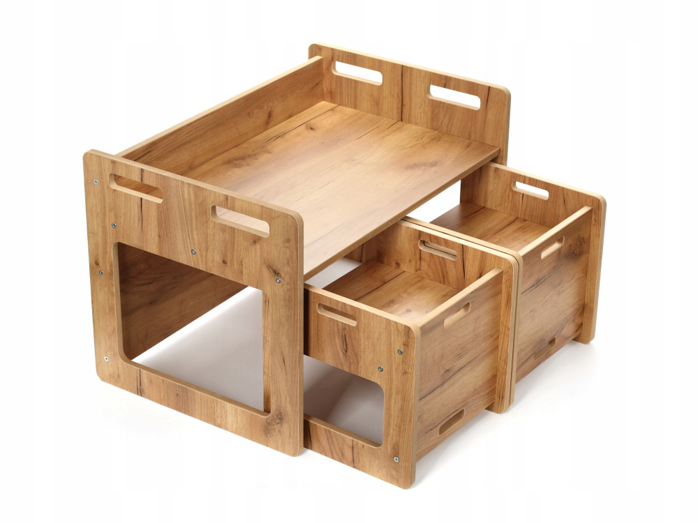Stolik możesz łatwo zamienić w skrzynię na zabawki, dzięki czemu zyska on nową funkcję i zajmie niewiele miejsca.