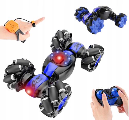 Zabawka w której zastosowano innowacyjną technologię sterowania zarówno tradycyjnym pilotem jak i kontrolerem gestów ! Wystarczy założyć kontroler na rękę, który wygląda jak żywcem wyjęty z filmów science-fiction włączyć i już możemy zacząć zabawę w sterowanie samochodem który jak prawdziwy robot będzie podlegał ruchom naszej ręki.