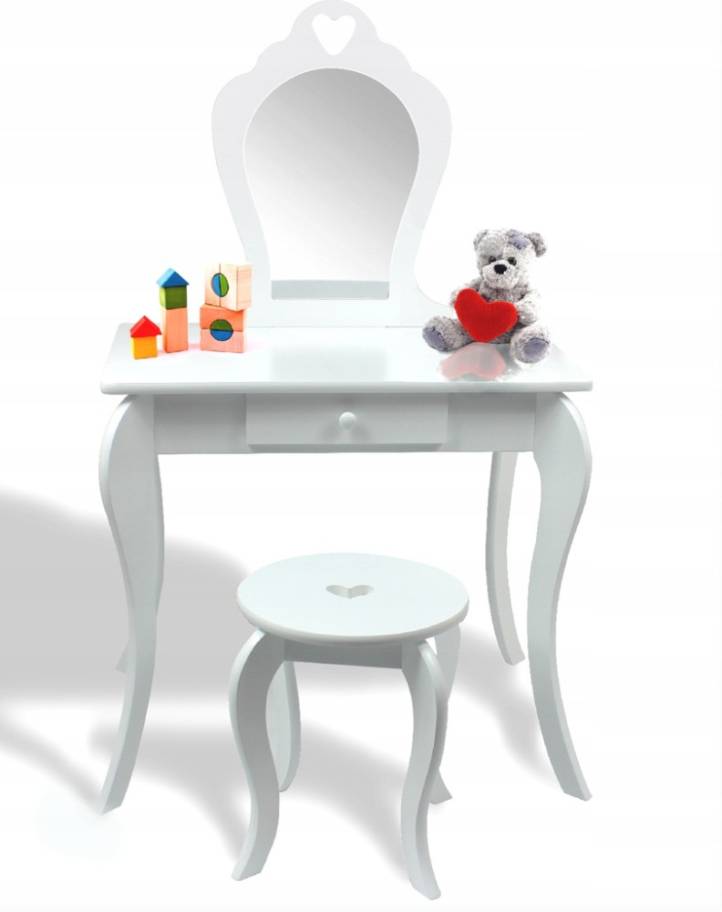 TOALETKA KOSMETYCZNA DLA DZIEWCZYNEK DZIECI Z LUSTEKIEM ORAZ TABORETEM