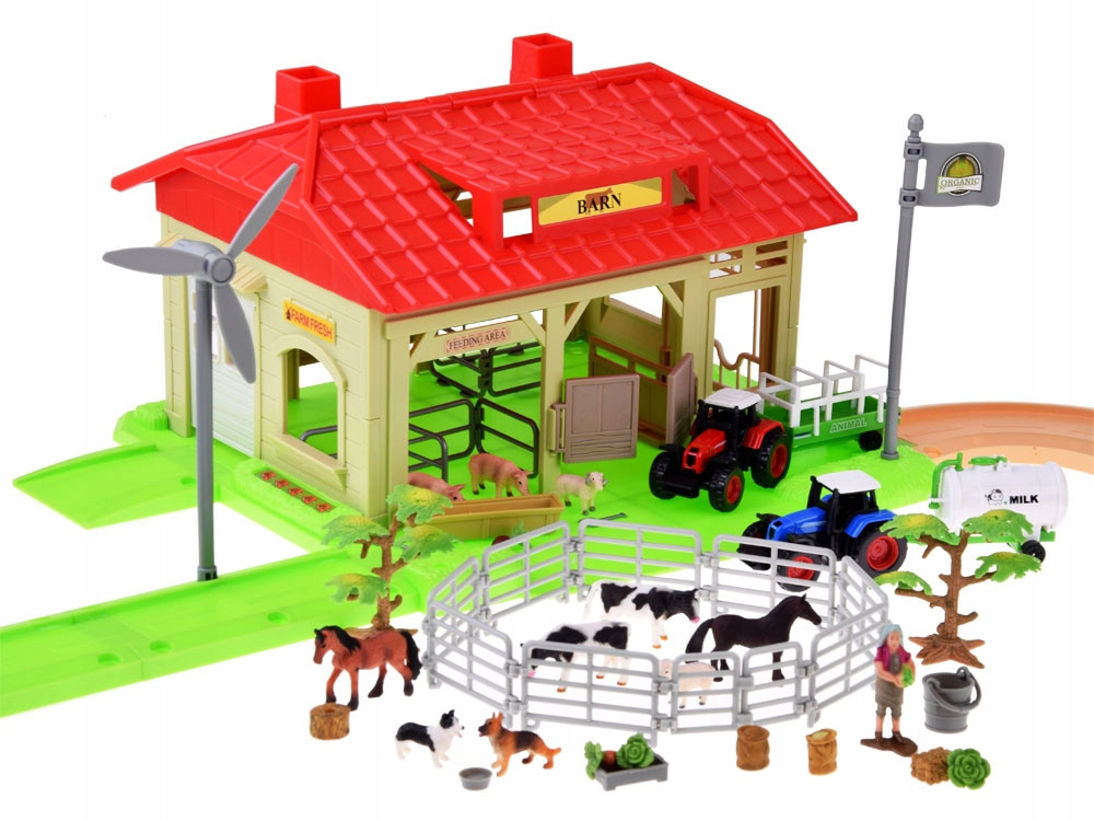 Mocno rozbudowana farma to propozycja dla wszystkich pasjonatów agroturystyki, hodowli zwierząt, rancha z końmi. Taka zagroda zapewni mnóstwo pracy i ciekawych zajęć każdemu małemu gospodarzowi. Zestaw zapakowany jest w efektowne opakowanie, świetnie nada się na prezent.