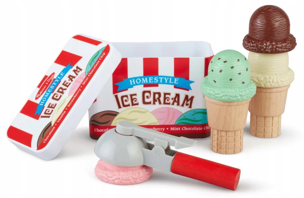 Lody, lody dla ochłody. Teraz i Wasze dziecko może nawoływać swoich klientów. Oto kolejna propozycja od Melissa & Doug, w której główną role odgrywają te lubiane przez wszystkich zimne smakołyki. Lody sprawdzą się do zabawy zarówno latem, kiedy te prawdziwe królują na naszych stołach, jak i zimą, kiedy tęsknimy za ich smakiem.