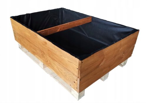 Skrzynia jest podwyższona - wykonana na palecie, dzięki czemu nie ma bezpośredniego kontaktu z podłożem. Jest również wygodniejsza przy transportowaniu.