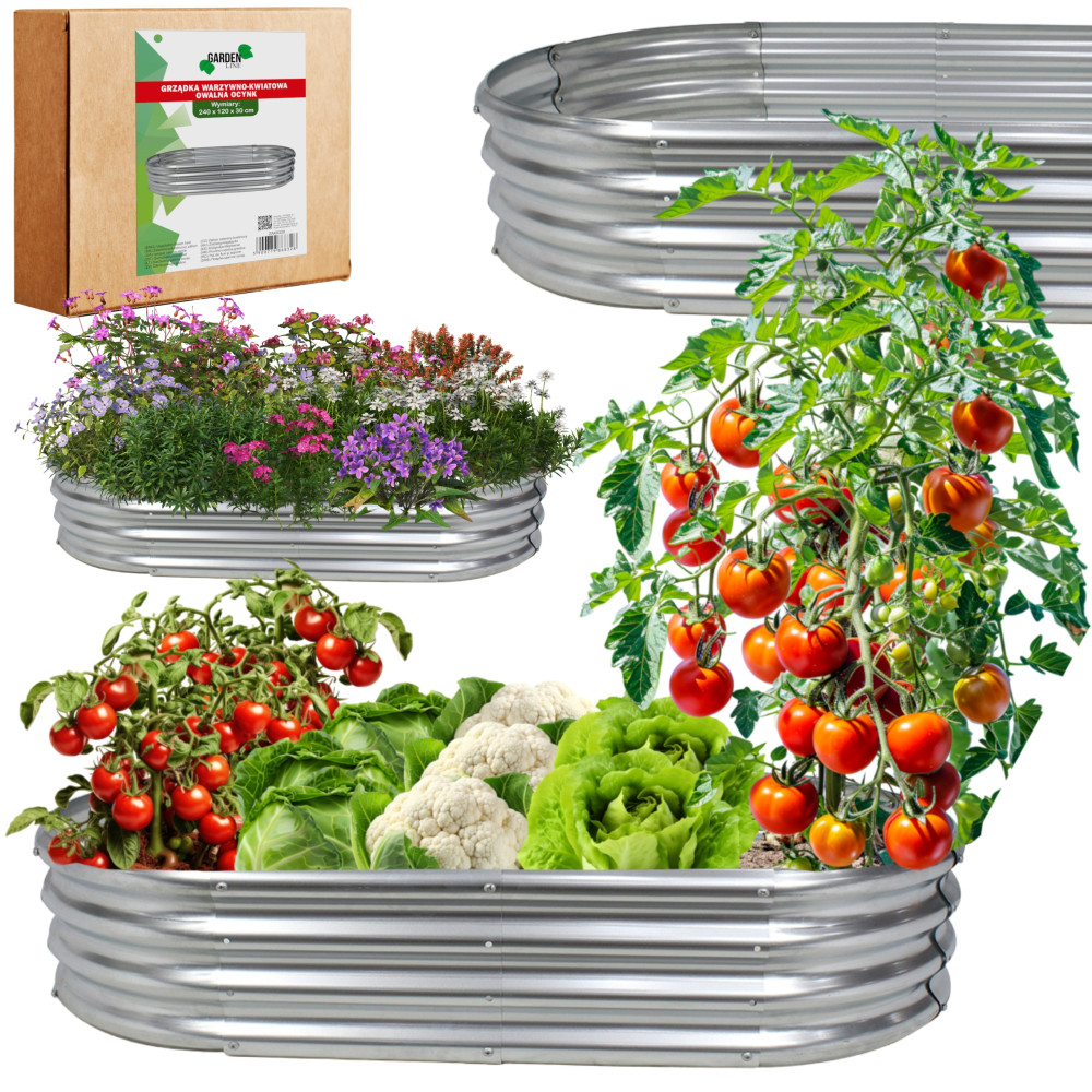 Grządka warzywno-kwiatowa owalna o wymiarach 240 x 120 x 30 cm, to nowoczesne i estetyczne rozwiązanie do każdego ogrodu, zarówno dużego, jak i mniejszego. Dzięki swoim wymiarom pozwala na uprawę szerokiej gamy roślin, zarówno warzyw, jak i kwiatów, oferując przy tym wygodę pracy i dostęp do roślin z każdej strony. Jest to rozwiązanie łatwe w montażu i utrzymaniu, zapewniające zarówno wydajność uprawy, jak i dekoracyjny aspekt ogrodu.