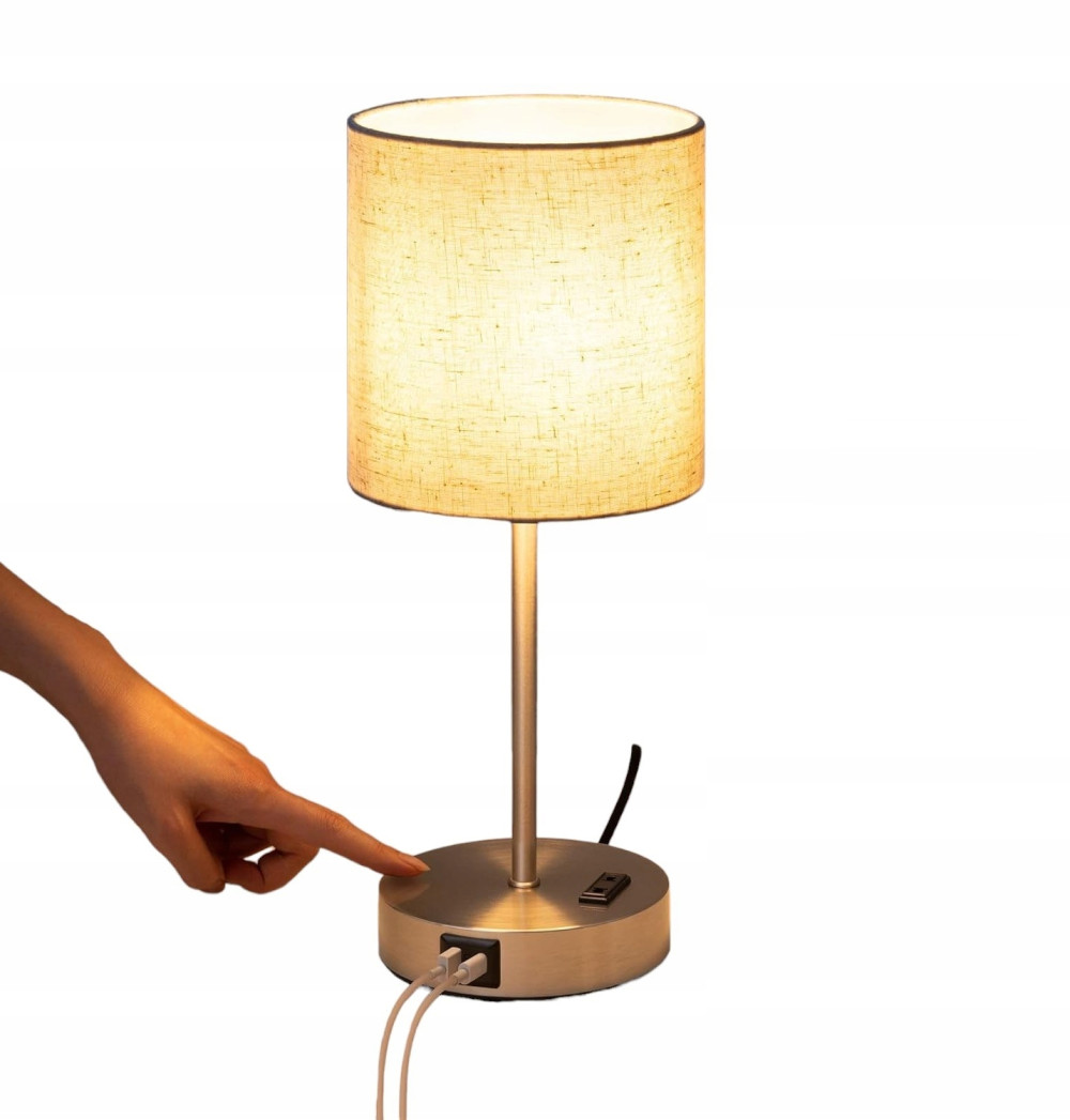 Lampa stołowa zawiera 2 wysokiej jakości porty ładowania USB (5 V/2,1 A). TypeA i TypeC mogą zaspokoić większość potrzeb. Można ładować telefon komórkowy, Kindle, tablet, słuchawki lub inne urządzenia (maks. 500 W), bardzo praktyczna i pozwala zaoszczędzić nawet listwy zasilającej. Wskazówka: ładowanie nie jest ważne przy wyłączonej lampie za pomocą przełącznika inline.