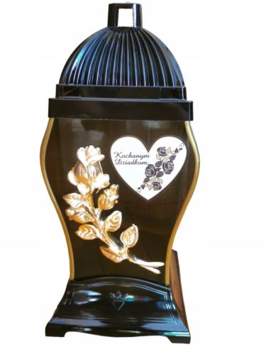 CZARNY LAMPION ZE ZŁOTĄ APLIKACJĄ ORAZ DEDYKACJĄ (DO WYBORU)