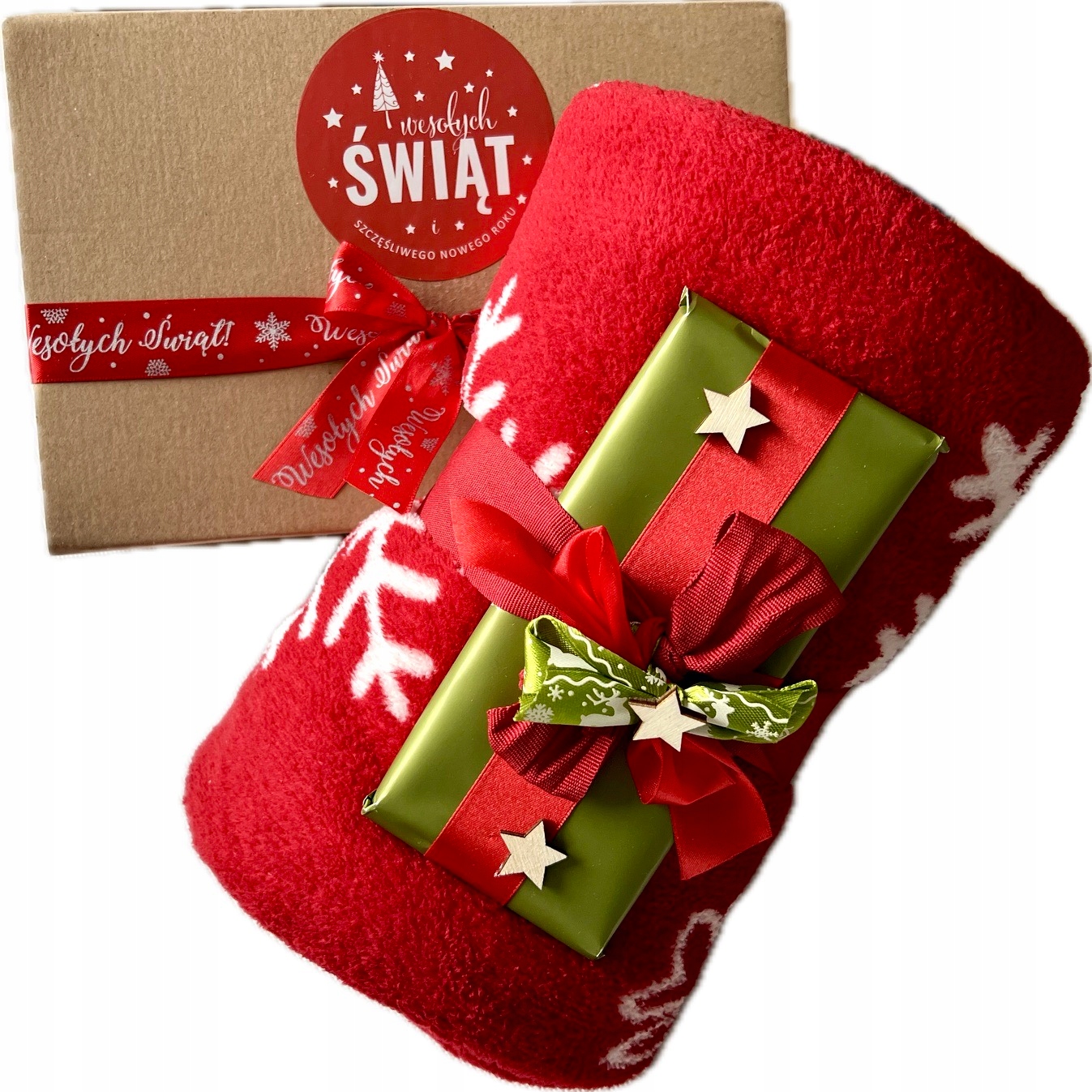 pudełko świąteczne z napisem Wesołych Świąt