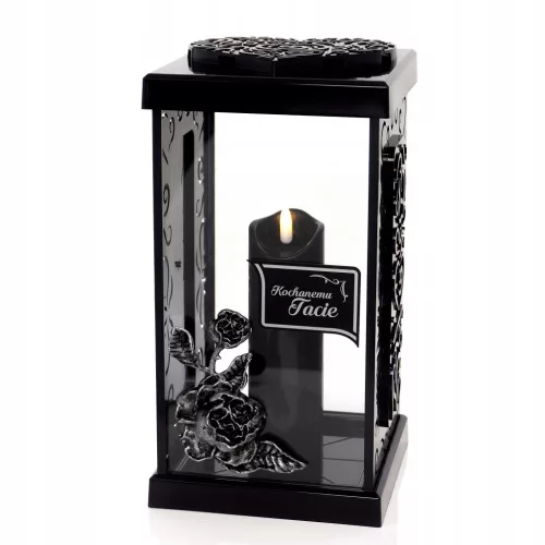 Na zdjęciu w zniczu została umieszczona świeca wysokości 17,5cm. Nie jest ona częścią zestawu, można zakupić ją oddzielnie.