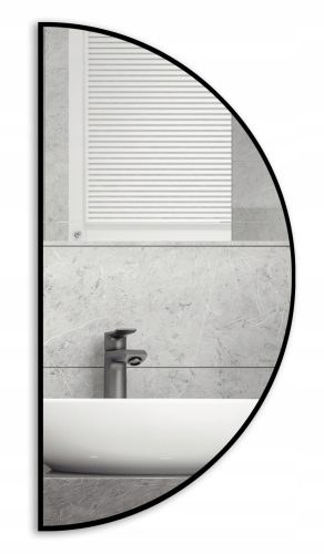 Półokrągłe lustro ścienne w aluminiowej ramie.