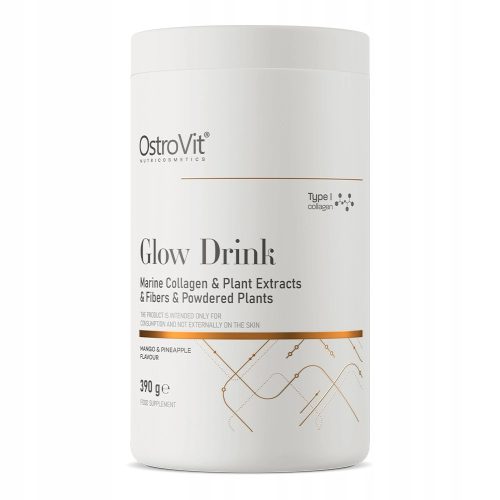 OstroVit Glow Drink to kompleksowy suplement diety, który zawiera 18 wartościowych składników - w produkcie można znaleźć m.in. kolagen, kwas hialuronowy, błonnik jabłkowy lub inulina.