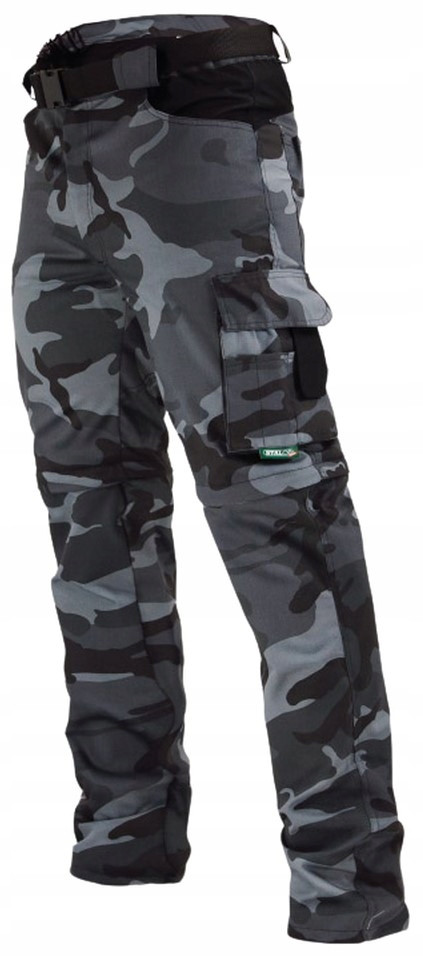 Spodnie robocze męskie do pasa o wzorze moro, rozmiar XXL. Spodnie 2w1 dają możliwość przekształcenia w bermudy dzięki odpinanej dolnej części nogawek.