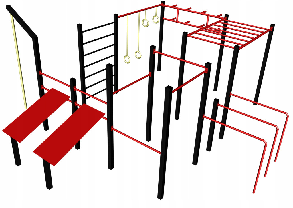 Plac Street Workout PSSX04 jest profesjonalnym narzędziem do rozwoju w Street Workout’cie dla każdego, szerokie zastosowanie od amatora do profesjonalisty sprawia, że każdy może na tym placu ćwiczyć. Po za zastosowaniem w Street Workout plac nadaje się również jako „małpi gaj” dla dzieci do zabawy – dzięki przemyślanej konstrukcji i zastosowaniu solidnych materiałów dziecku nic nie grozi co potwierdza deklaracja zgodności z normą.