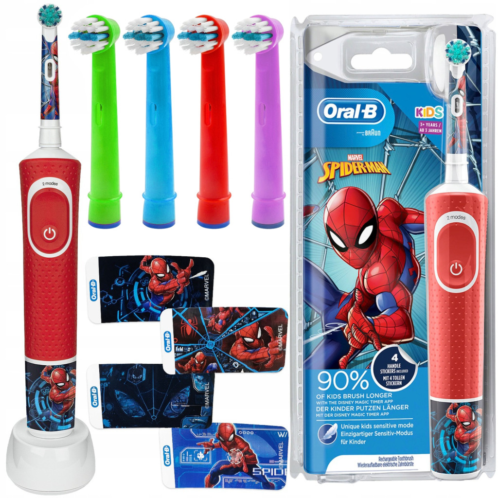 Oscylacyjno-rotacyjna szczoteczka elektryczna Oral-B Stages Power z postaciami filmu Spiderman zapewnia niezwykłą skuteczność szczotkowania, a zarazem sprawia, że mycie zębów staje się doskonałą zabawą.