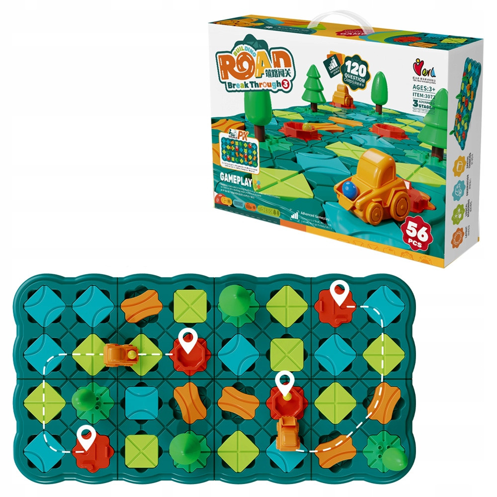 Budowanie dróg i przekraczanie poziomów wykorzystując moduły torów do połączenia punktu początkowego i końcowego. Gdy dziecko ukończy budowę linii, korzysta z samochodu, aby zweryfikować poprawność ułożenia. Autko poprawnie przejeżdża trasę i zostawia kolorową kulkę na końcowym odcinku trasy.