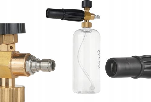 Zastosowanie szybkozłączki ułatwia i przyspiesza proces podłączania i odłączania pianownicy do myjki ciśnieniowej, zwiększając wygodę użytkowania i oszczędzając czas.