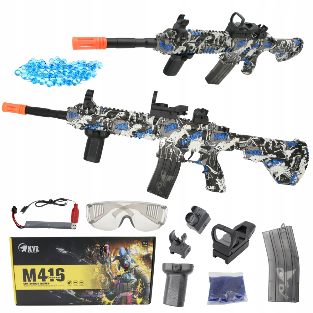 Pistolet M416 niebieski z akumulatorem na kulki żelowe.