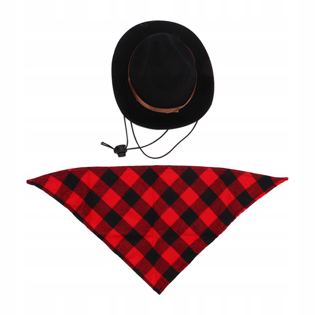 Kapelusz i szalik kowbojski dla psa kostium na Halloween czarny czerwony kratka