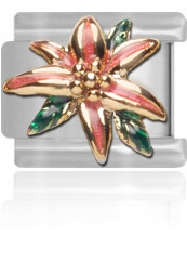 Złota lilia z emalią w kolorze w odcieniach różu i zieleni