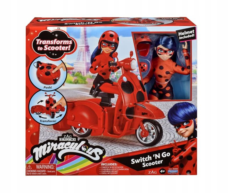 Zmień jo-jo Biedronki w jej niesamowity, czerwono-czarny skuter, żeby przyspieszyć akcję i pomóc swojej superbohaterce.